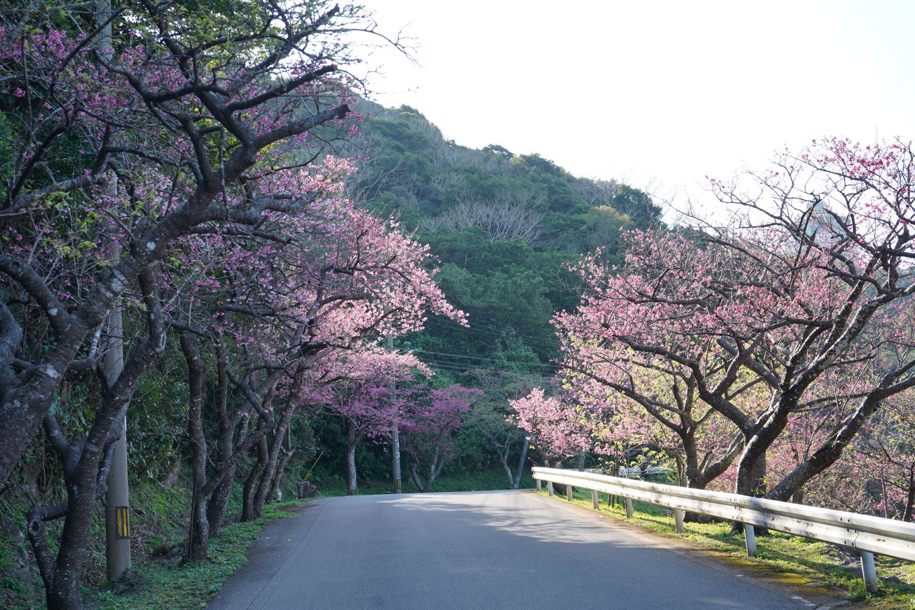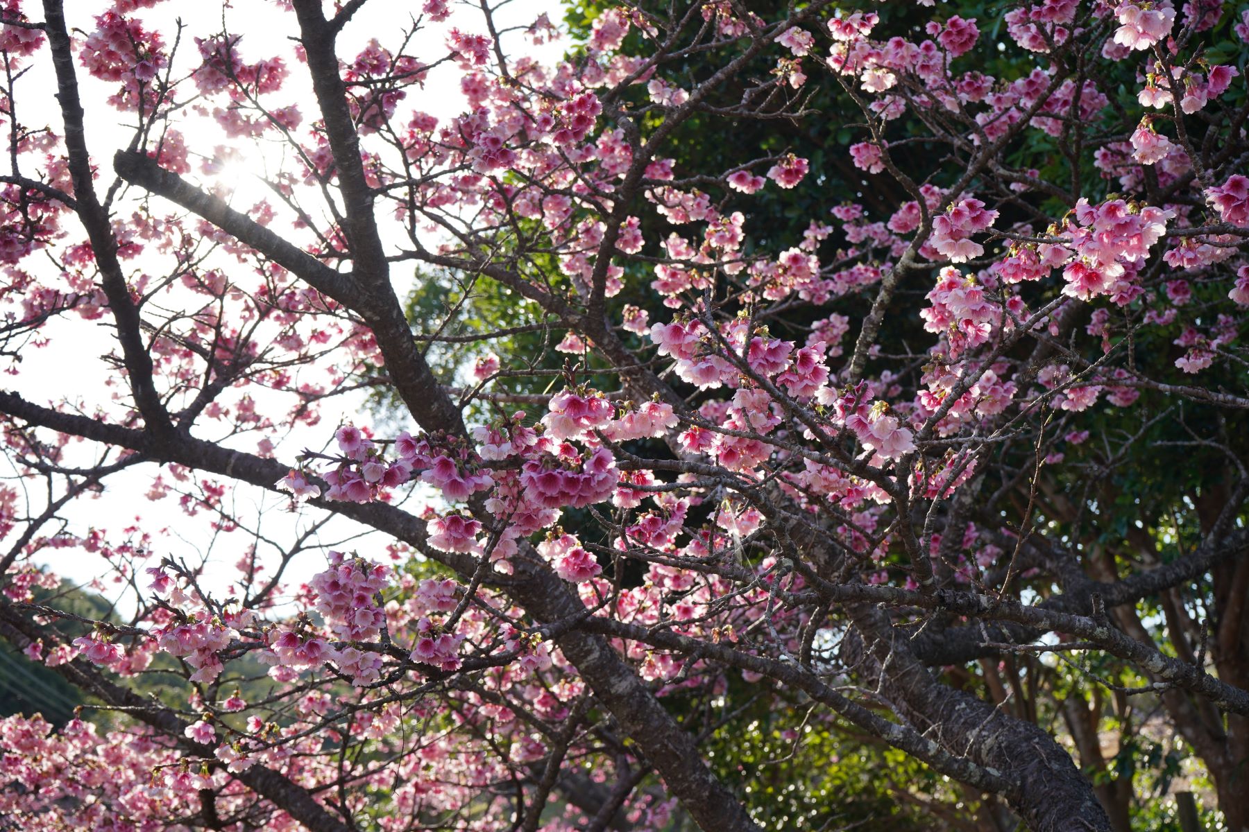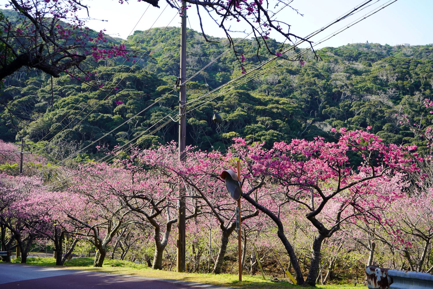 2月7日には満開を迎えました。2月16日現在は、ピンク色に染まった八重岳も、新緑の息吹を感じる青々とした八重岳に替わりつつあります。