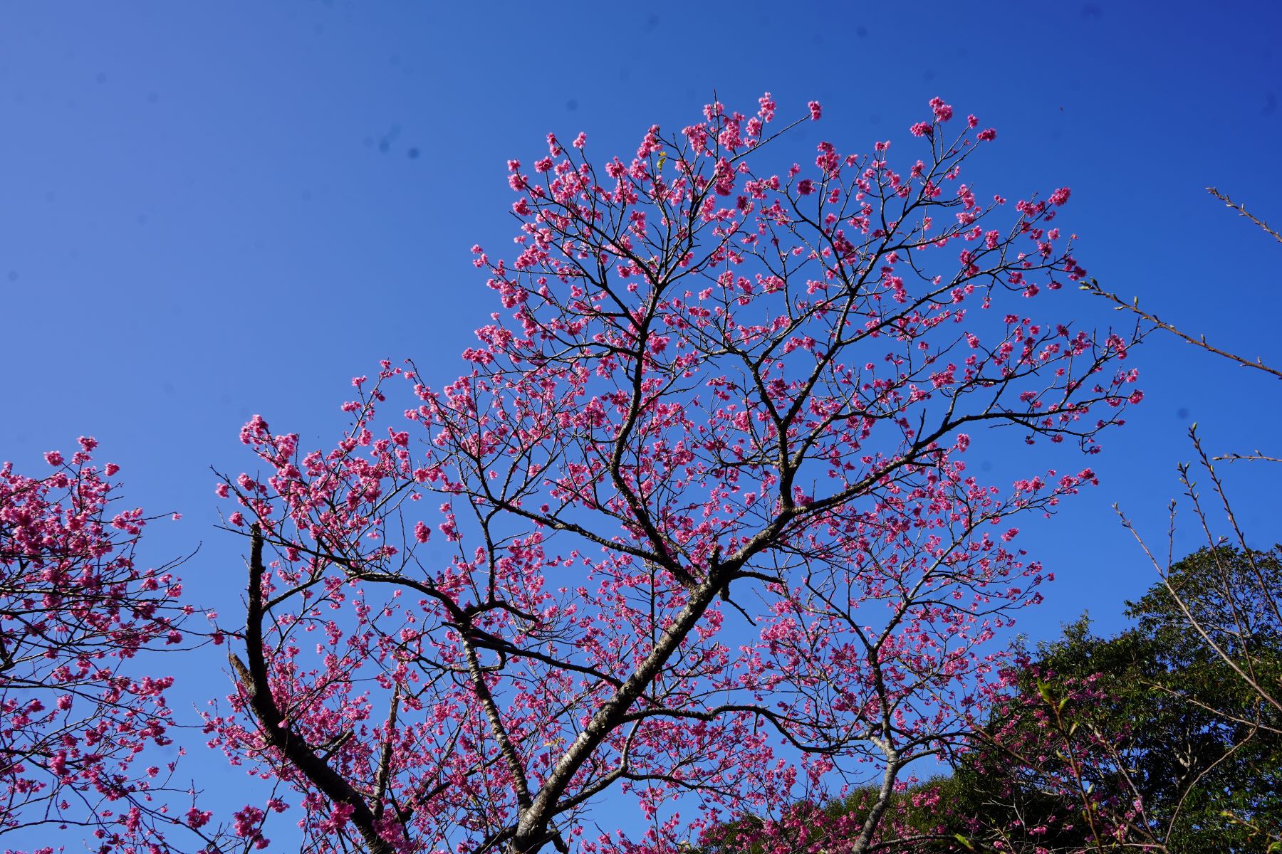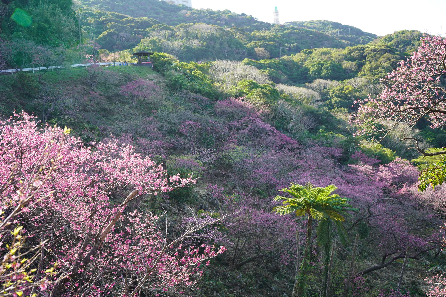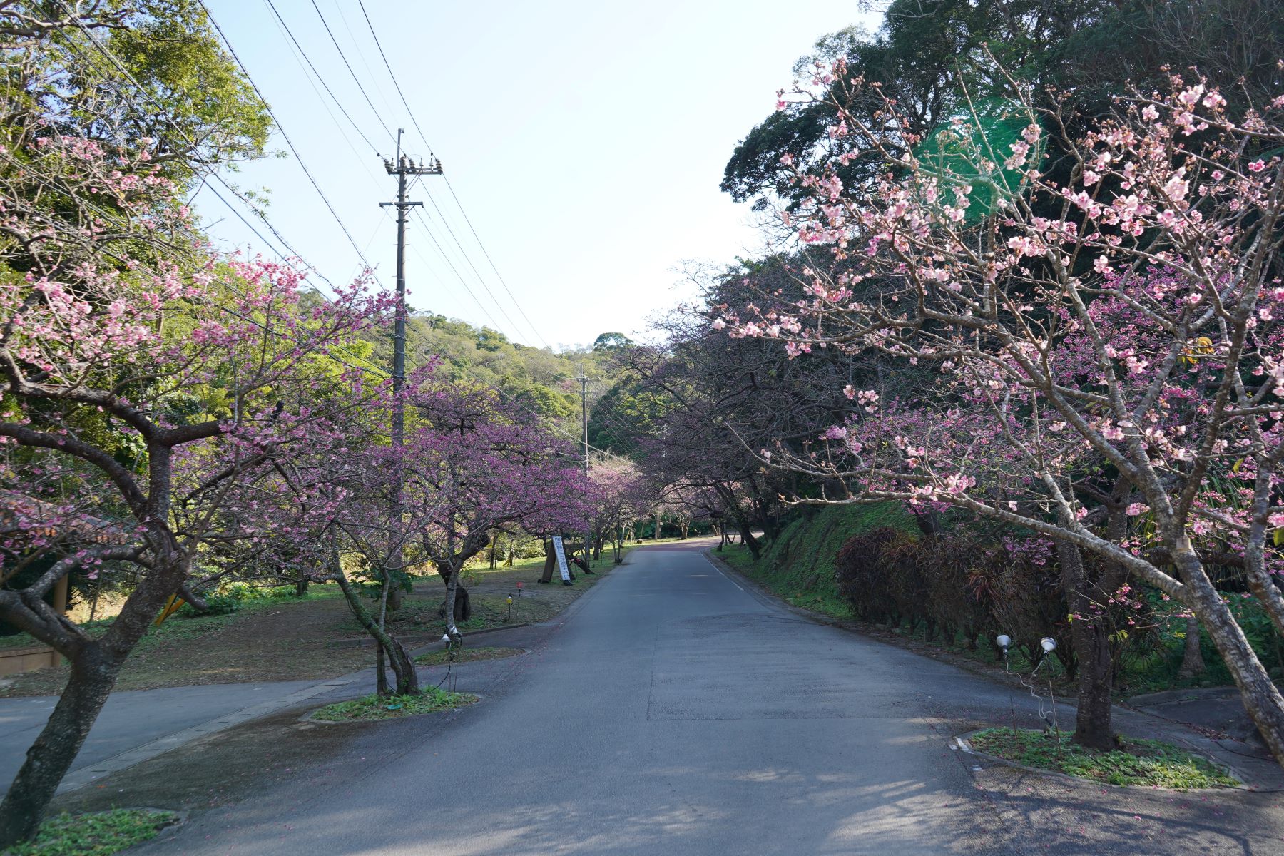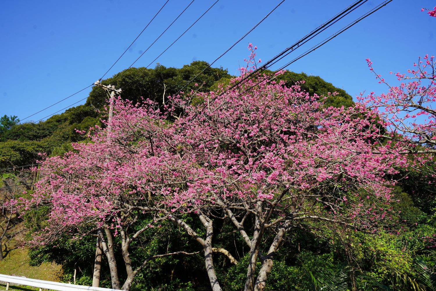 2月7日には満開を迎えました。2月16日現在は、ピンク色に染まった八重岳も、新緑の息吹を感じる青々とした八重岳に替わりつつあります。