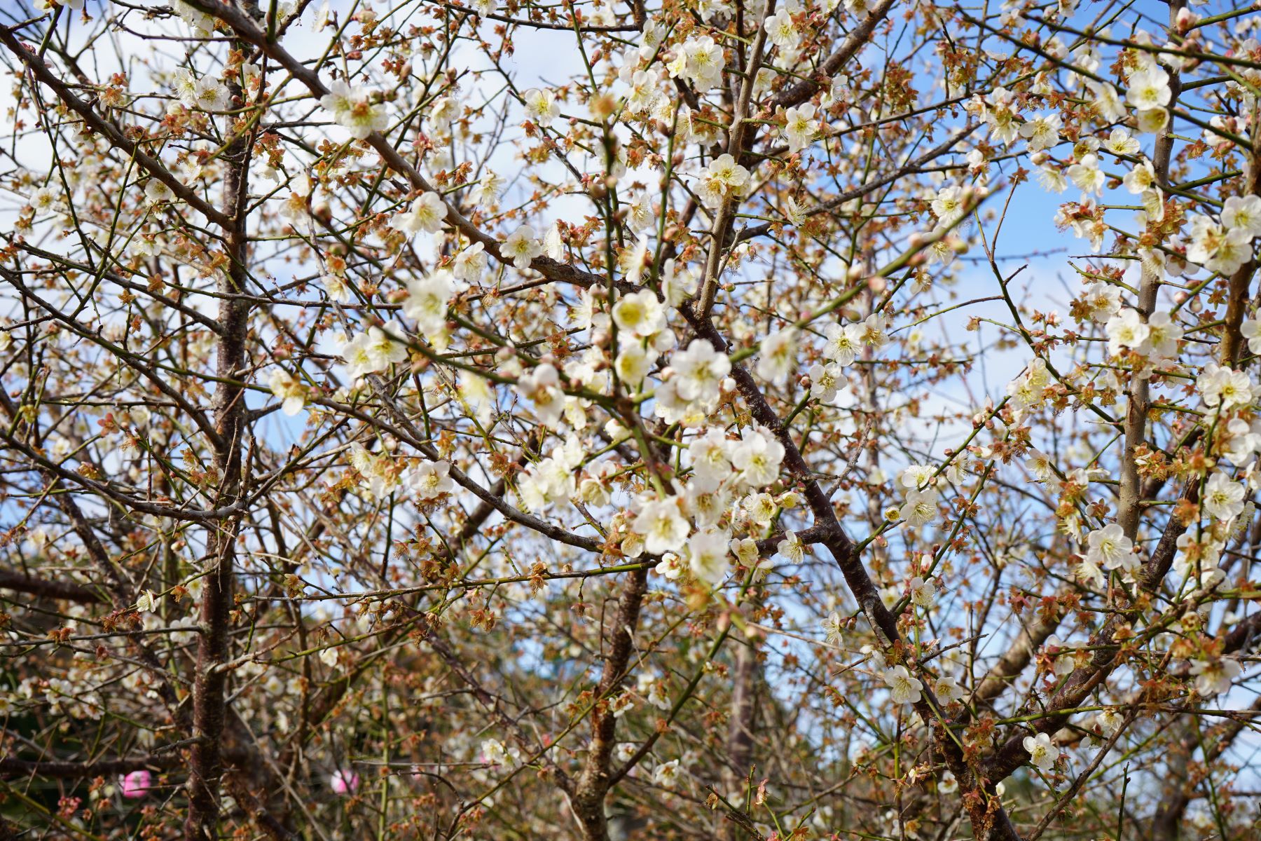 ▲八重岳桜の森公園内や八重岳から伊豆味に抜ける道路沿いで、「白梅」が満開になっています。